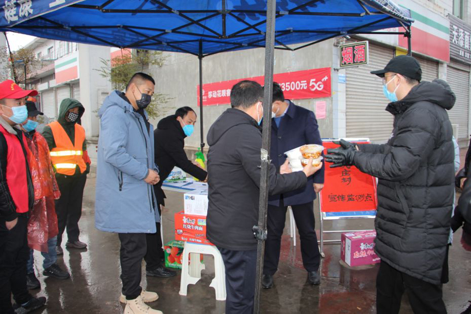 2月1日,在耀州區(qū)委常委、統(tǒng)戰(zhàn)部部長(zhǎng)寇愛(ài)萍、區(qū)政協(xié)副主席李旭江的帶領(lǐng)下,知新聯(lián)會(huì)會(huì)長(zhǎng)馮玉清,常務(wù)副會(huì)長(zhǎng)李鵬和知新聯(lián)會(huì)13名副會(huì)長(zhǎng)及理事,冒著嚴(yán)寒前往永安路南橋、董家河鎮(zhèn)王家砭村、關(guān)莊鎮(zhèn)稠桑、關(guān)莊村、瑤曲鎮(zhèn)劉河村、廟灣鎮(zhèn)廟灣村、柳林村、照金鎮(zhèn)北梁村、照金鎮(zhèn)旬邑路口、高爾塬村、小丘鎮(zhèn)獨(dú)石村、小丘村、移寨村、區(qū)人民醫(yī)院等14個(gè)一線疫情檢查站進(jìn)行慰問(wèn),為24小時(shí)在戶外防控疫情一線奮戰(zhàn)的工作人員送去了口罩、消毒用品等急需的醫(yī)療物資和熱騰騰的快餐食品、新鮮的水果,雨衣、燒水壺、礦泉水等生活用品,總價(jià)值3萬(wàn)余元。這些物資不僅有效緩解了基層一線防疫物資緊缺的壓力,溫暖了奮戰(zhàn)在防疫一線的干部的心,也鼓舞了大家戰(zhàn)勝疫情的信心,更描繪了一幅眾志成城、全民攜手共戰(zhàn)疫情的感人畫面。
