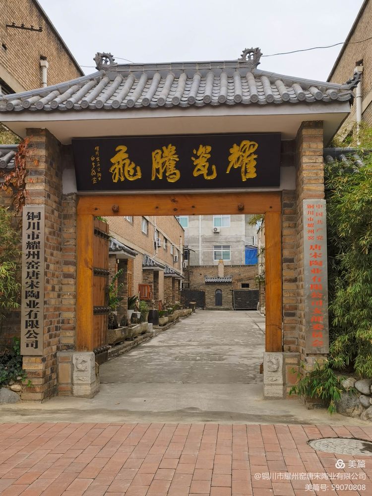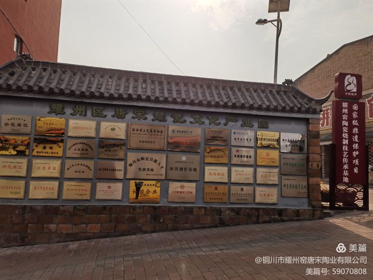 耀州窯唐宋陶業(yè)有限公司位于千年古鎮(zhèn)黃堡,地處古耀州窯“十里窯場(chǎng)”的中心,滋養(yǎng)得耀瓷秀色如玉的漆水河在公司門前蜿蜒而過,靈動(dòng)飄逸之風(fēng)就撲面而來,伴著朝暉初起,仿古的石牌坊吸引著追尋耀瓷藝術(shù)的腳步,倒裝壺的雕塑矗立在道路的一旁,鳳柄高翹、展翅欲飛,獅流氤氬、水如珍珠般瀉落在曲線柔美的玉壺春瓶中,池中水蓮搖曳,唐風(fēng)宋韻就茵茵的濕潤(rùn)柔軟了心......
