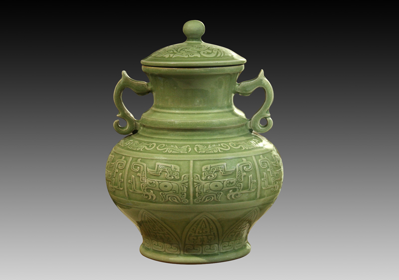 雙耳夔龍紋蓋罐