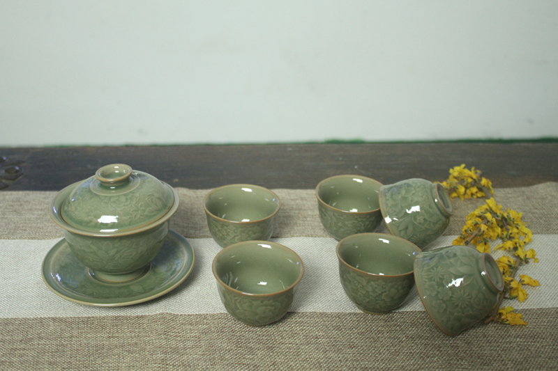 百花蓋碗茶具